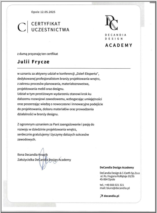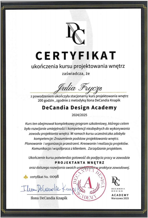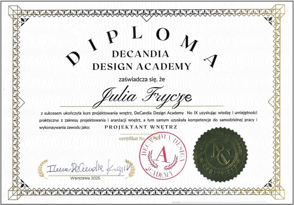 DeCandia Design AcademyWykształcenie profilowe.
