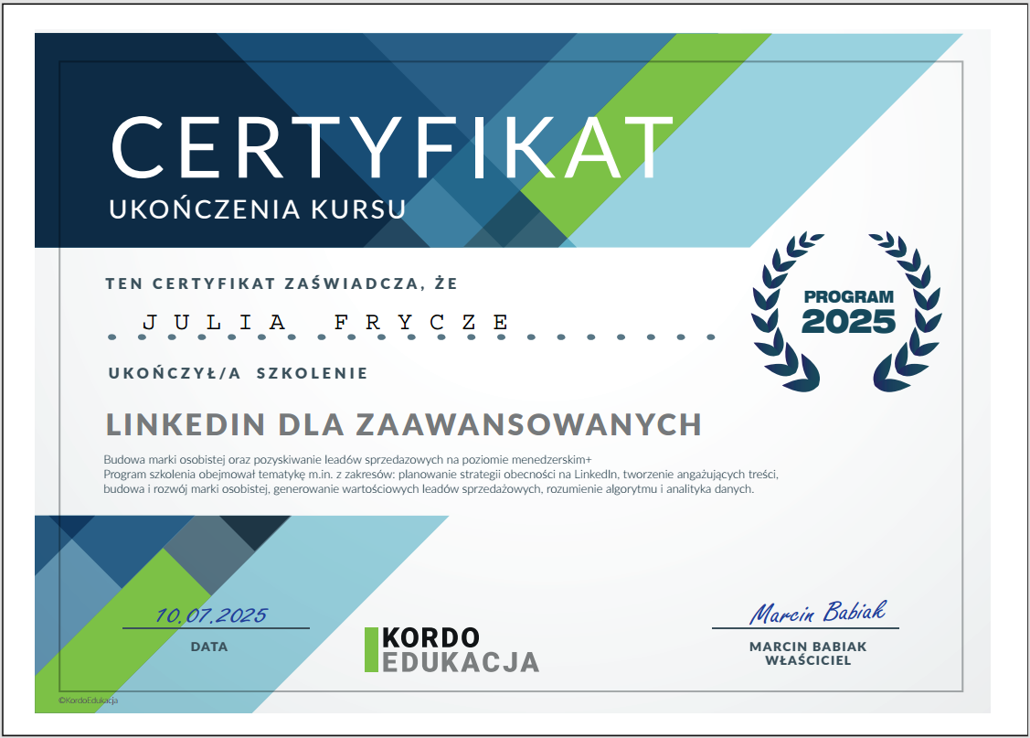Dyplom ukończenia kursu